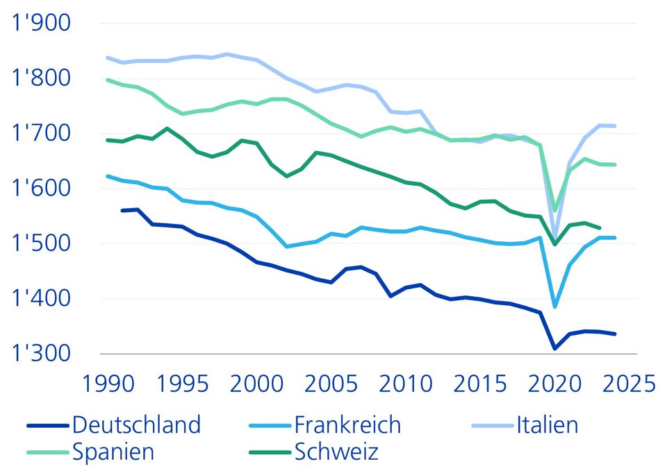Jährliche Arbeitsstunden pro Arbeitnehmer