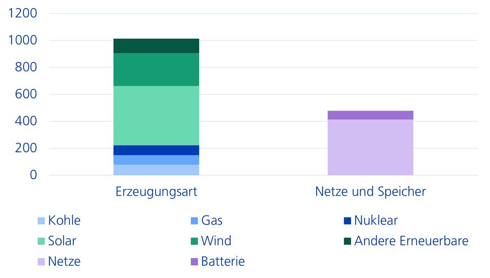 Weltweite Elektrizitätsinvestitionen im Jahr 2025 in USD Mrd