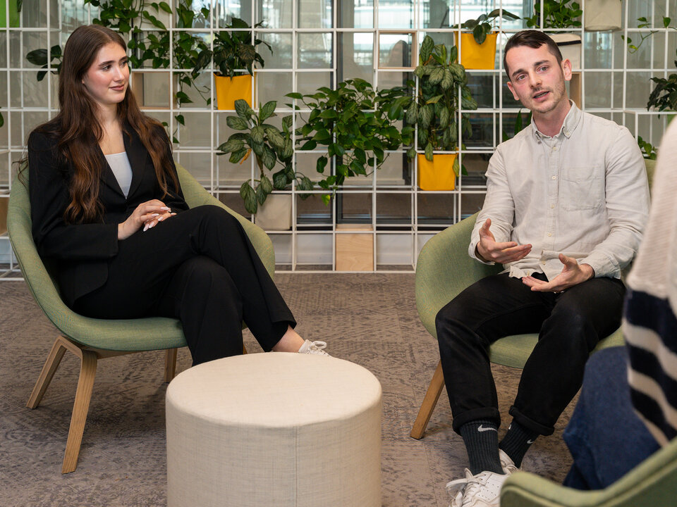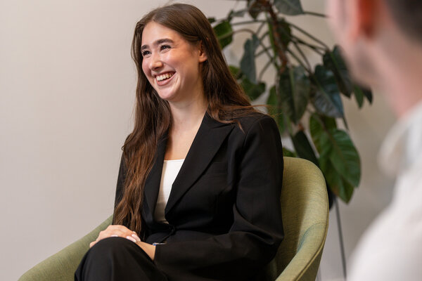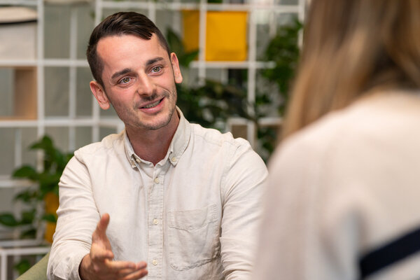 Für beide war die Berufsmesse der erste Schritt in Richtung ZKB. Der nahbare und sympathische Auftritt der Zürcher Kantonalbank und vorallem die Präsenz mit vielen Ansprechspersonen am Stand der Berufsmesse hat Eindruck gemacht. Im späteren Bewerbungsprozess bestätigte sich dann der erste positive Auftritt. «Ich hatte immer Angst vor Bewerbungsgesprächen, weil sie in der Schule oft als sehr ernst und streng dargestellt wurden», erzählt Ryana. «Aber bei der ZKB war alles so persönlich und angenehm, ich spürte, dass hier Vertrauen und Offenheit eine wichtige Rolle spielen. Sie wollten wirklich wissen, wer ich bin und was mich interessiert. Ich habe mich schon beim ersten Kontakt an der Berufsmesse wohlgefühlt, und das war für mich ein entscheidender Moment.» Daniel beschreibt sein Kennenlernen der ZKB Mitarbeitenden ähnlich: «Es war ein sehr angenehmes und familiäres Auswahlverfahren, das mir einen Eindruck davon gab, wie das Miteinander in der Bank gelebt wird. Ich wusste schon am ersten Tag, dass ich mit den anderen Bewerberinnen und Bewerbern gut zusammenarbeiten könnte. Das hat mich überzeugt, die Lehre bei der ZKB zu beginnen. Diese Entscheidung habe ich bis heute nicht bereut.»