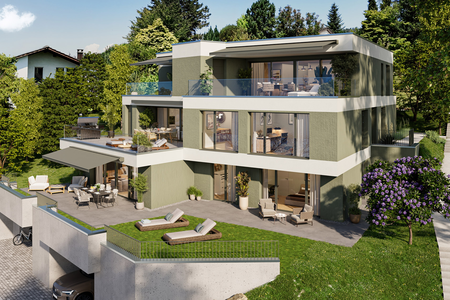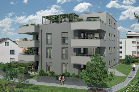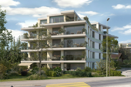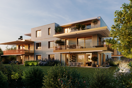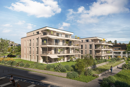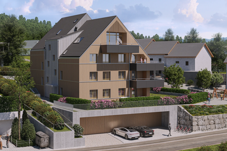 In erhöhter Lage mit herrlicher Aussicht entstehen 4.5-Zimmer-Wohnungen mit 112 m². Diese sind ab CHF 1’150’000.– erhältlich und ab Ende 2027 bezugsbereit.