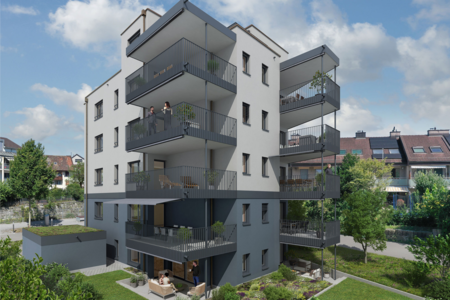 Im Giesshübel-Quartier entstehen 38 exklusive 1.5- bis 6.5-Zimmer-Wohnungen ab 41 m². Diese sind ab CHF 1’210’000.– erhältlich und bieten modernes Wohnen in urbanem Ambiente.