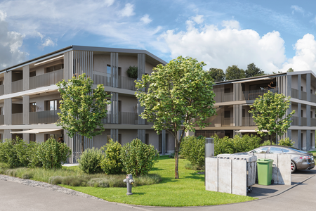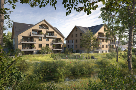 Im Herzen von Oberhasli entstehen zwei Mehrfamilienhäuser mit insgesamt 12 Eigentumswohnungen, die modernen Wohnkomfort bieten und den Alltag leichter und schöner machen.
